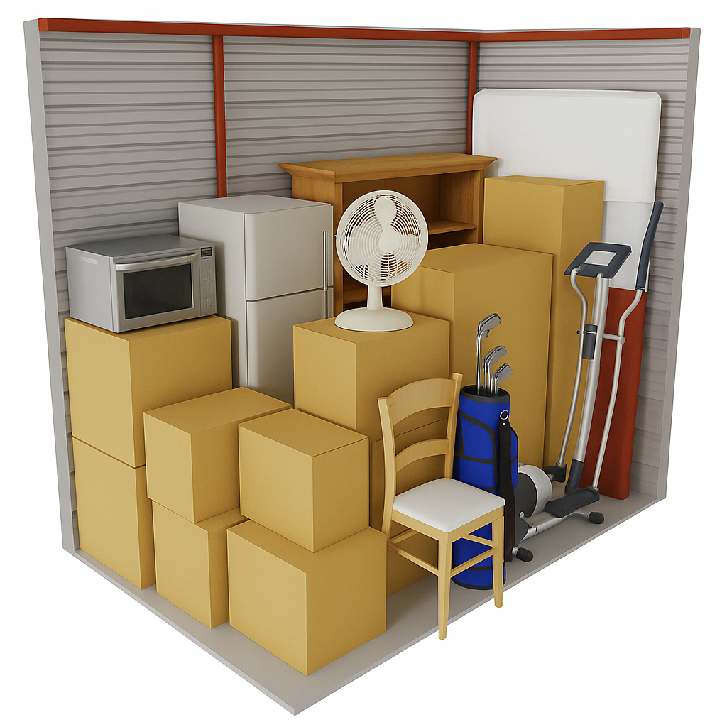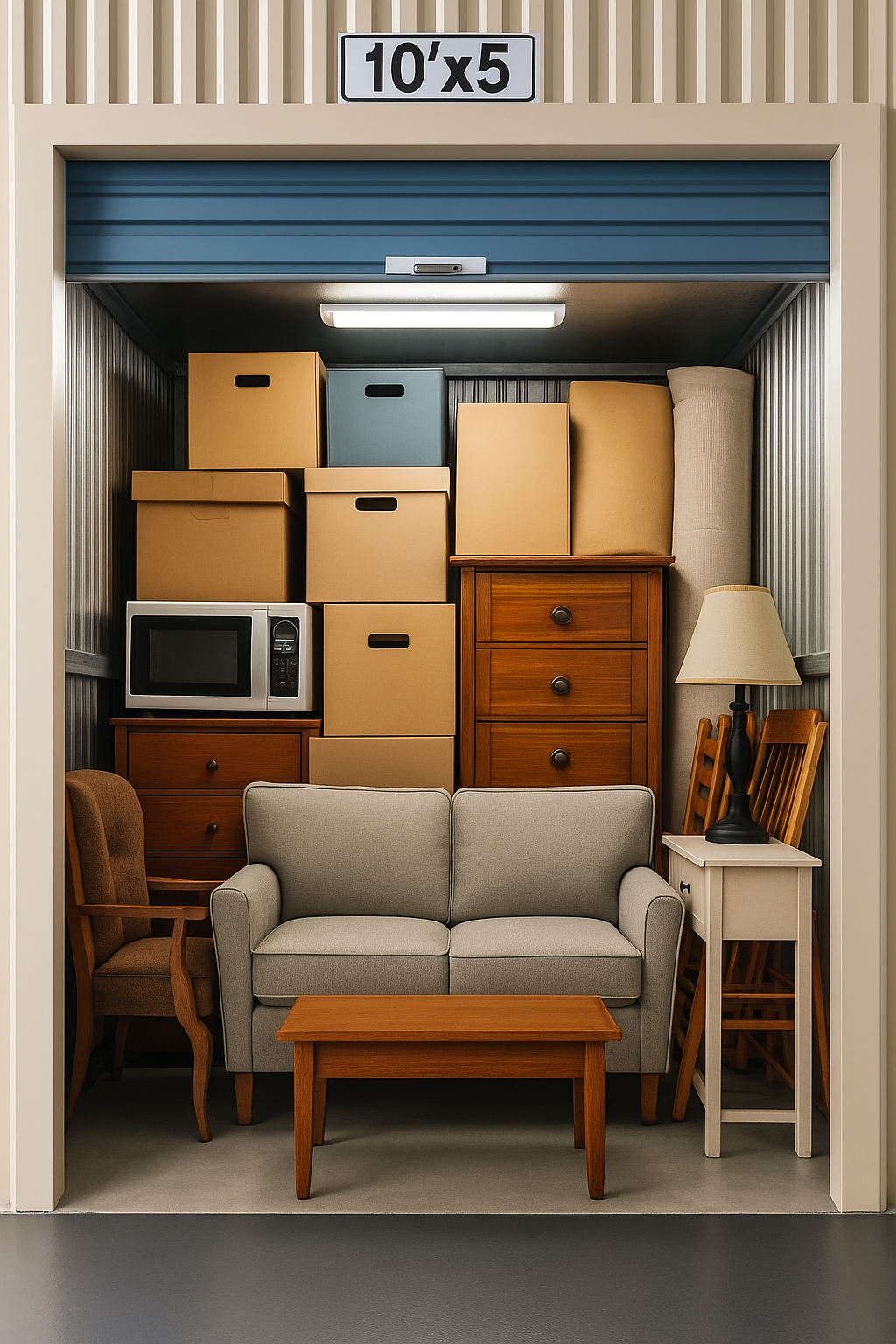 This Unit will hold: Personal items, clothes, boxes, skis, children's toys, small furniture items, business records, and sales rep materials.